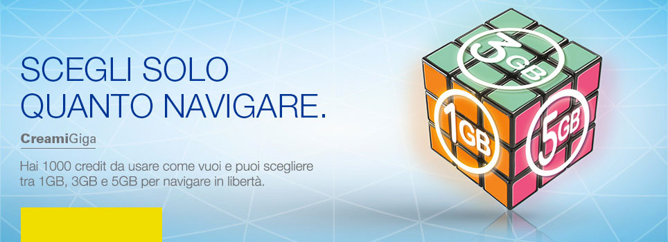 - Creami Giga 1: 1000 credit più 1GB di traffico dati a 10 euro/4 settimane;