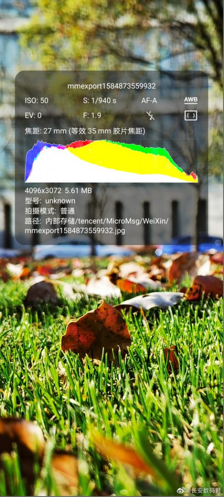 C’è anche uno scatto con tanto di istogramma e alcuni dettagli sull’immagine. La fotocamera principale produrrà scatti da 12 Megapixel con un rapporto di 4:3 e avrà un obiettivo da 27 mm, equivalente a un obiettivo professionale da 35 mm.