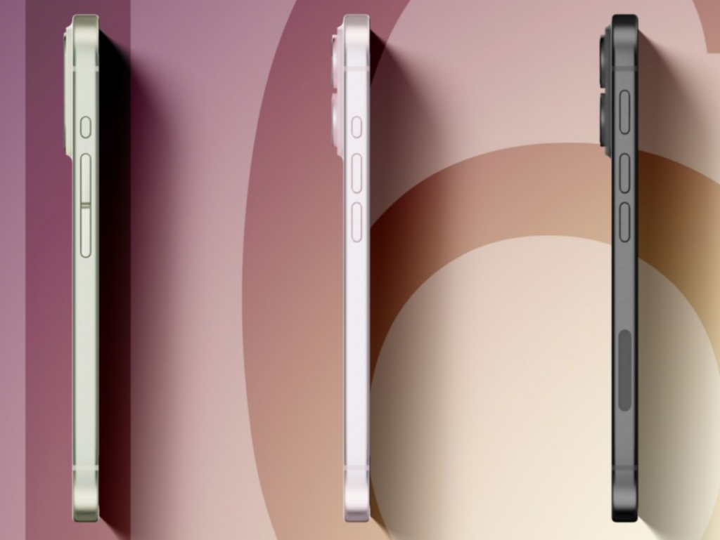 Tutti e tre i dispositivi sono inoltre dotati di action button capacitivi, posti sopra il bilanciere del volume con il modello nero che ospita un pulsante visivamente più grande. Gli altri due rendering dei telefoni in rosa e nero cambiano il design della fotocamera e restituiscono un aspetto più familiare del celebre smartphone, con ciascun obiettivo alloggiato all’interno di un anello di metallo.