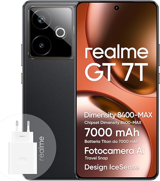 Il GT 7T mantiene il design e la batteria del fratello maggiore, ma si affida al chip Dimensity 8400-Max, leggermente meno performante. Lo schermo da 6,78 pollici e la batteria da 7000 mAh restano invariati, così come la certificazione IP69. Il corpo è stato rinforzato con materiali a nanoparticelle e un sistema “airbag” interno per migliorare la resistenza a urti e flessioni.
