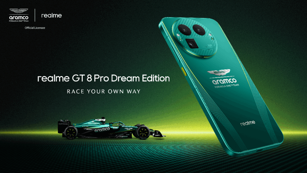 realme ha anche annunciato una versione speciale del GT 8 Pro, co-progettata con Aston Martin Aramco F1 Team. La Dream Edition sfoggia una livrea Aston Martin Racing Green con accenti Lime Essence, emblema centrale in argento e interfaccia a tema motorsport, con wallpaper dinamici e modalità GT con suoni da pista.