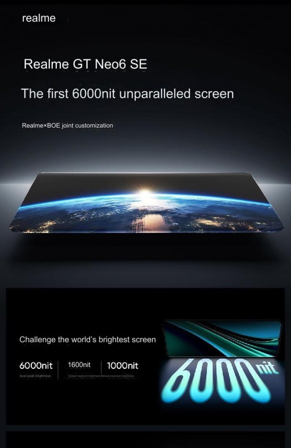 Tale è probabilmente per l’area dello schermo locale nei contenuti HDR, poiché Realme ha confermato che lo schermo porterà una luminosità massima globale di 1,600 nits e fino a 1,000 nits in modalità manuale. Il display offrirà anche un dimming PWM da 2,160Hz e un tasso di campionamento al tocco da 2,500Hz. L’immagine indica infine che il GT Neo6 SE sarà lanciato ad aprile.