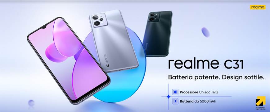 realme C31 sarà disponibile dal 1° aprile in Italia con due varianti di memoria: 3GB+32GB e 4GB+64GB, a partire rispettivamente da 149 e 169 euro.