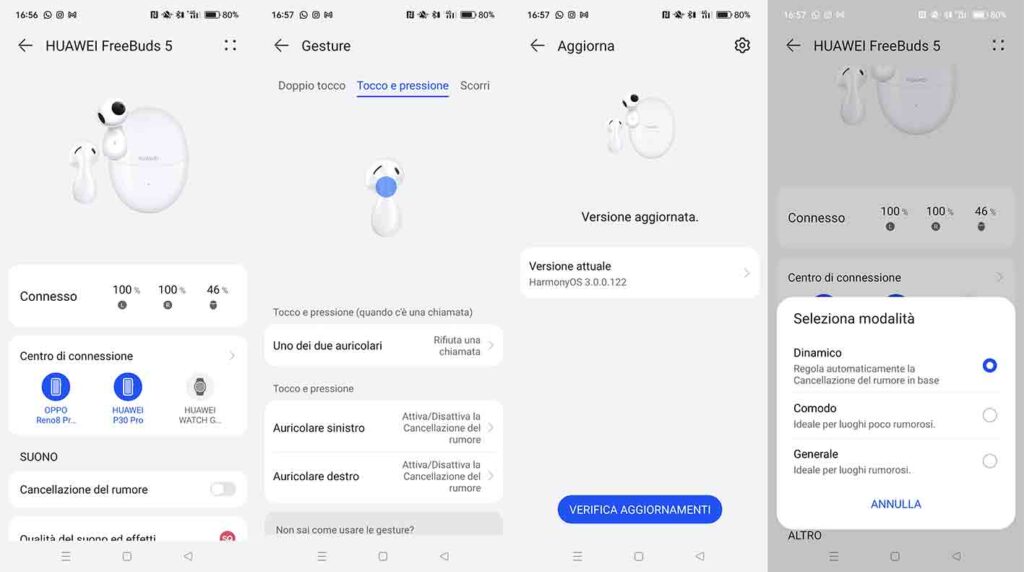 Sull’app saranno visibili i diversi dispositivi Huawei già installati e sarà possibile aggiungere nuovi device, fra cui le cuffie Freebuds 5, aggiornarle e gestire le loro diverse funzionalità, vederne la carica (sia degli steli sia del case), attivare la cancellazione del rumore e le sue personalizzazioni, trovare gli auricolari facendogli emettere un suono acuto, personalizzare le gesture e impostare le diverse modalità acustiche disponibili.