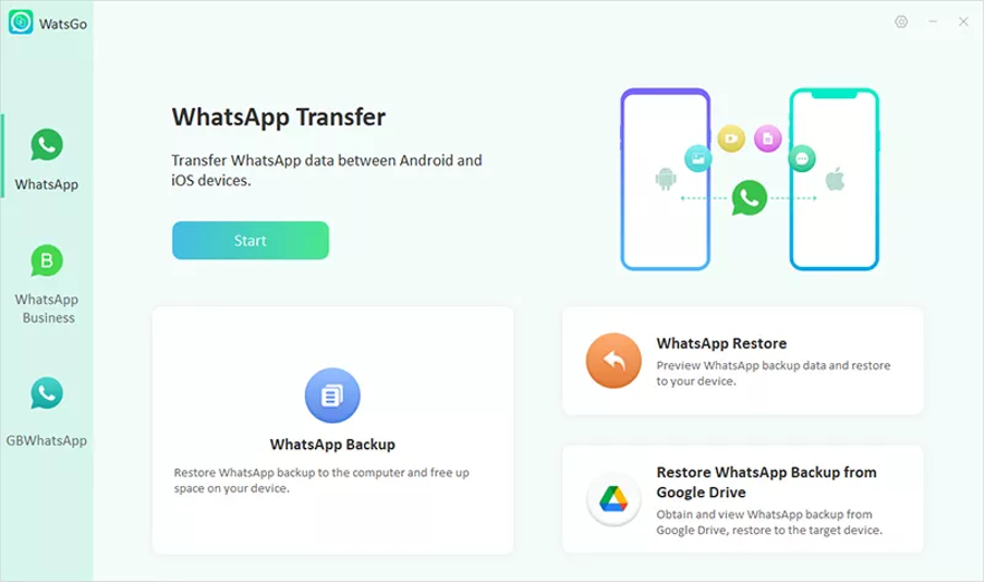 iToolab WatsGo è uno strumento dedicato a risolvere le problematiche degli utenti di WhatsApp. Quando passi a un nuovo cellulare o cambi da Android a iPhone, potresti dover compromettere i dati essenziali di WhatsApp, ma fortunatamente iToolab WatsGo è pronto ad aiutarti a trasferire WhatsApp al nuovo telefono in un clic e offre una vasta gamma di tipi di dati, tra cui messaggi di testo di WhatsApp, immagini, video, adesivi, contatti, ecc.