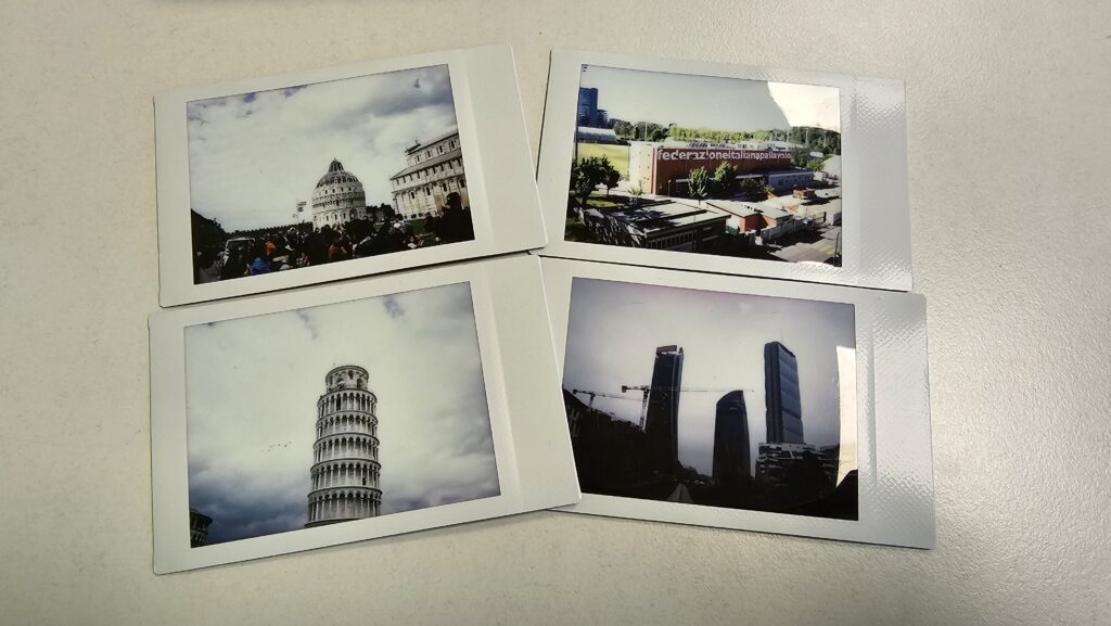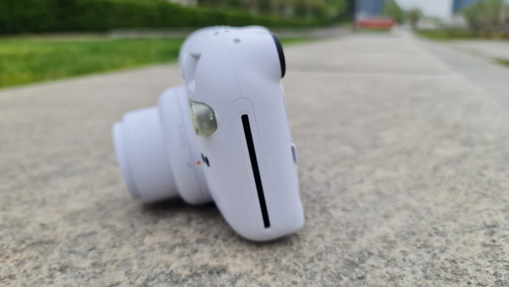 Ma il bello deve ancora arrivare. Sì, perché dopo avere scattato la fotografia, Instax Mini 12, provvederà immediatamente a stampare l’immagine su un supporto cartaceo, da 86×54 mm, che incornicia una foto da 62×46 mm. La fase di sviluppo dura circa 90 secondi, giusto il tempo di ideare un nuovo scenario di scatto. La foto viene espulsa dalla fessura laterale, mentre le “cartucce” vanno inserite nel vano posteriore, coperto da un comodo coperchio a scatto.