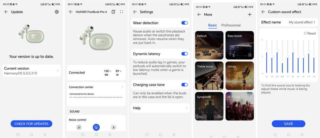 Il dibattito sull’efficacia della cancellazione del rumore, invece, rimarrà aperto anche dopo l’uscita delle FreeBuds Pro 4. Huawei dichiara una diminuzione dei rumori di fondo fino a 100 decibel e un miglioramento del 30% rispetto alla generazione precedente. In alcuni scenari, l’effetto è chiaramente percepibile, in altri molto meno. Ma come sempre tanto dipende dalla sensibilità di ciascun timpano e dalla tipologia del rumore di fondo. Rollii e bassi vengono più facilmente “tagliati” rispetto agli alti e agli acuti.
