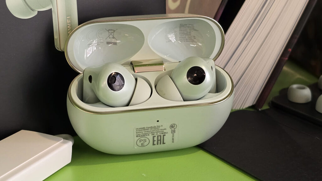 Esteticamente, le Freebuds Pro 4 presentano un design in-ear molto simile al modello precedente. Gli auricolari sono disponibili nelle colorazioni Black, White e Green (questa la versione in nostro possesso e utilizzata per la prova), e sono caratterizzati dal design Spectrum Silver Strings, che si ispira alla bellezza degli strumenti a corda. Ogni auricolare è rifinito con sei strati di lacca protettiva. La versione verde è elegante e sportiva, forse un po’ più femminile, quella nera un po’ più dal gusto orietaleggiante e per spiriti coraggiosi, quella bianca la più classica delle tre. Comune denominatore la finitura dorata che attraversa orizzontalmente i due bordi della custodia e contorna, nella parte inferiore, la connessione USb Type-C.