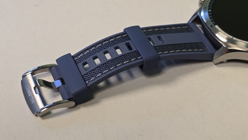 Appena indossato, Huawei Watch 5 trasmette una piacevole sensazione di comodità, il bracciale Blue Woven regala un buon feeling ed è sufficientemente lungo per consentire una perfetta regolazione al polso, anche per le persone, come chi scrive, con un polso particolarmente ingombrante.