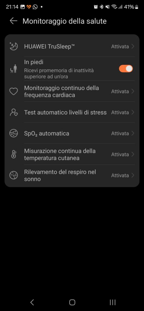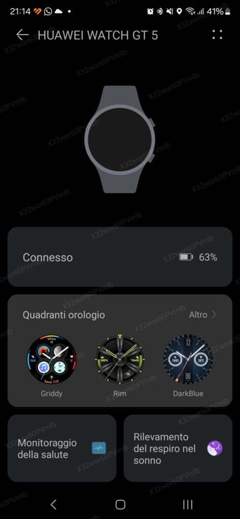 Interessante la possibilità di acquisire screenshot della schermata di Watch GT 5, proprio come sugli smartphone: basta premere contemporaneamente il tasto superiore e quello inferiore, per ottenere un’immagine che sarà trasferita al telefono in tempo reale. A proposito dei tasti fisici, segnaliamo la completa possibilità di personalizzazione dei due pulsanti scegliendo fra le tante funzioni disponibili e anche un piacevolissimo feedback durante la rotazione della ghiera.