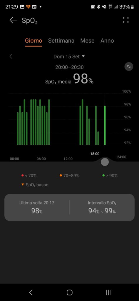 L’autonomia è da sempre uno dei punti di eccellenza degli smartwatch Huawei e il nuovo Watch GT 5 non tradisce la tradizione. Il produttore dichiara un’autonomia che può raggiungere, nella versione da 46 mm, fino 14 giorni. Noi, che siamo dei “vandali della tecnologia”, abbiamo attivato ogni tipo di notifica oltre a tutte quelle funzionalità capaci di sottrarre rapidamente energia, lasciando il display a lungo acceso. Non solo, Huawei Watch GT 5 ci ha accompagnato durante l’edizione di IFA 2024, per interminabili percorsi fra i padiglioni della fiera di Berlino, e il dato oggettivo registrato è quello di un consumo di batteria giornaliero di circa il 10%. Ciò consente di superare abbondantemente la settimana di utilizzo e di avvicinare i dati dichiarati dal produttore, come sempre piuttosto realistici La batteria si carica velocemente con un connettore magnetico a filo, parte della dotazione della confezione.