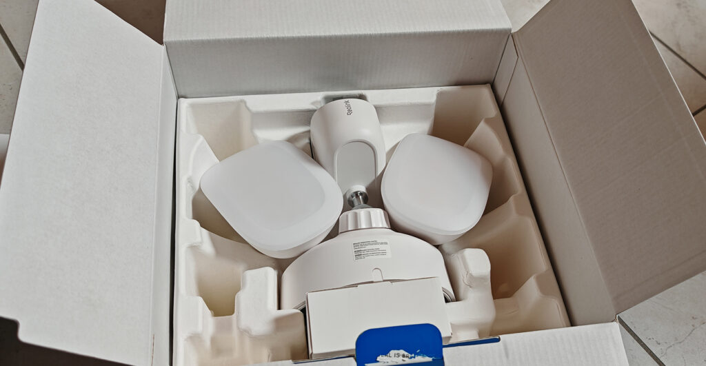 A prima vista, la Elite Floodlight WiFi si presenta come un dispositivo compatto ma solido: costruita per resistere alle intemperie (certificazione IP66), con linee moderne e due obiettivi laterali che si uniscono in un unico ampio campo visivo. Il modulo LED integrato è imponente, ma ben integrato nella scocca.