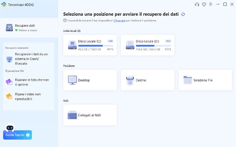 Con 4DDiG Data Recovery, hai accesso ad un’interfaccia utente intuitiva che semplifica notevolmente il processo di recupero, rendendolo accessibile anche a utenti non esperti.