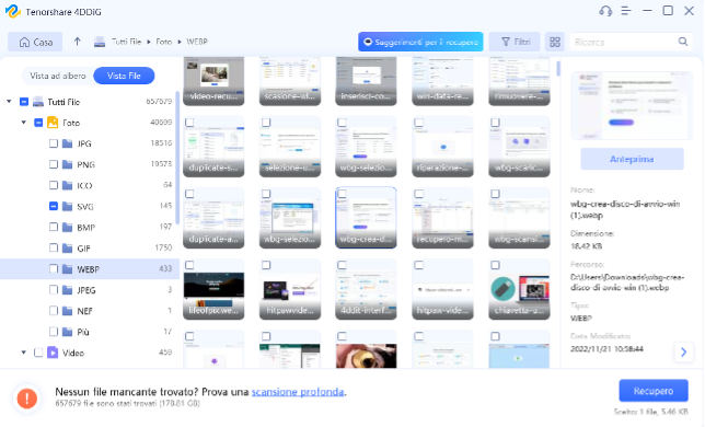 Dopo la scansione, esamina i risultati per identificare i file che hai necessità recuperare. Seleziona i dati desiderati e avvia il processo di recupero.