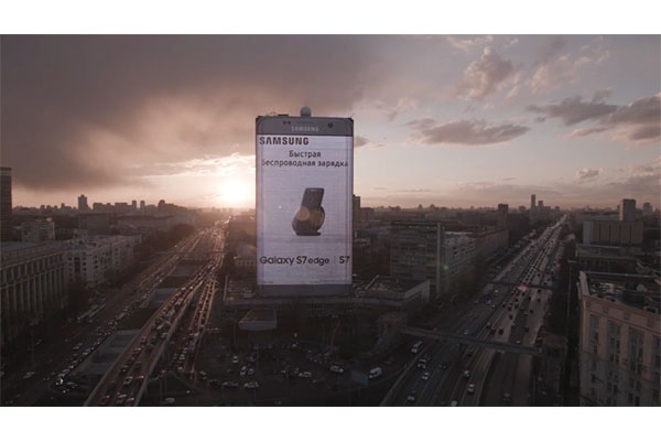Follia Samsung. L’ultima trovata della divisione marketing del produttore coreano vede protagonista un immenso Galaxy S7 Edge dal display di 40 x 80 metri collocato su di un grattacielo alto 25 piani nella città di Mosca, in Russia. Un vero e proprio cartellone pubblicitario digitale posto in corrispondenza del collegamento autostradale che porta verso l’aeroporto di Sheremetyevo e visibile da 2,2 chilometri di distanza.