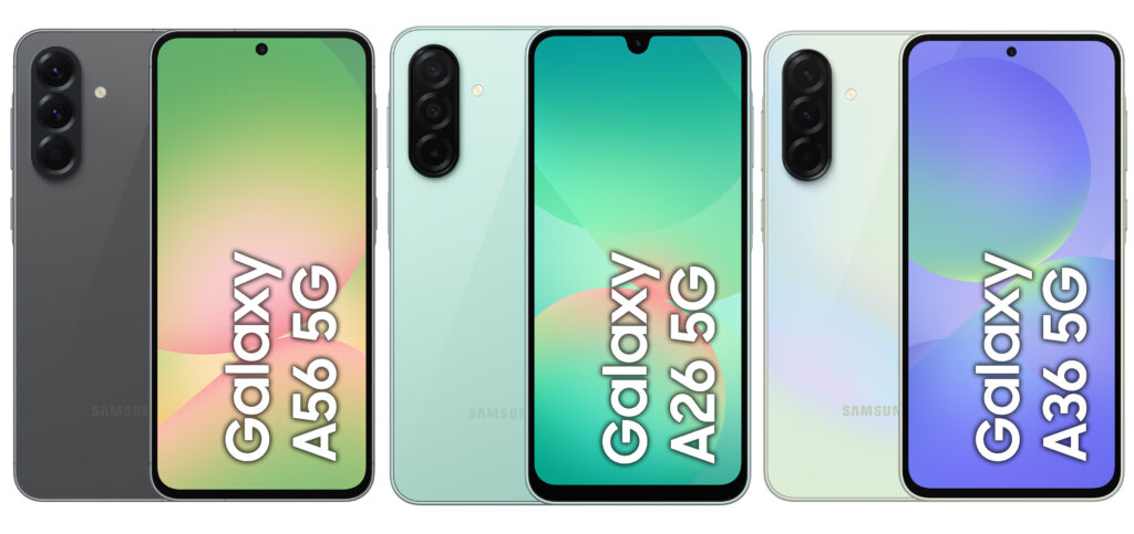 I nuovi Samsung Galaxy A56 5G, A36 5G e A26 5G saranno disponibili in diverse colorazioni: