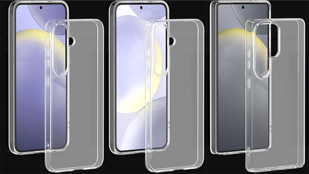 I ritagli per le fotocamere visti nelle custodie suggeriscono che Samsung manterrà lo stesso design visto nei modelli precedenti con allineamento verticale per il S25 e S25+, mentre l’Ultra avrà fotocamera extra. I pulsanti sono tutti sul lato destro, come da tradizione Samsung.