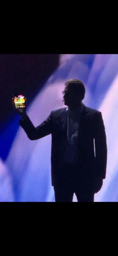 Justin Denison, Vicepresidente Senior del marketing, ha mostrato il telefono sul palco: un tablet quando è completamente aperto e un telefono quando è chiuso. Utilizza una nuova tecnologia di visualizzazione chiamata Infinity Flex Display che consente di aprire e chiudere il dispositivo più e più volte senza alcun problema.