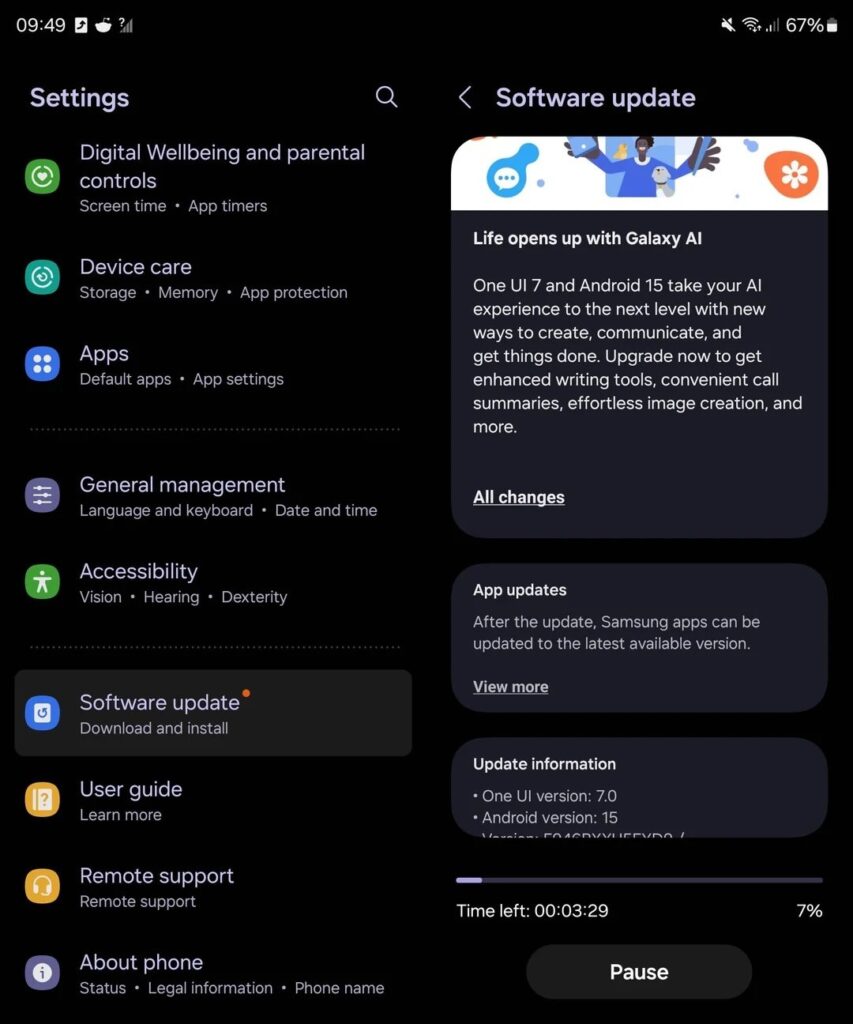 L’aggiornamento One UI 7.0 include la versione firmware F731BXXU5EYD9 per Galaxy Z Flip 5 e la versione F946BXXU5EYD9 per Galaxy Z Fold 5. Si tratta di un aggiornamento di grandi dimensioni, con una peso di download di oltre 5 GB e include le patch di sicurezza di aprile 2025.