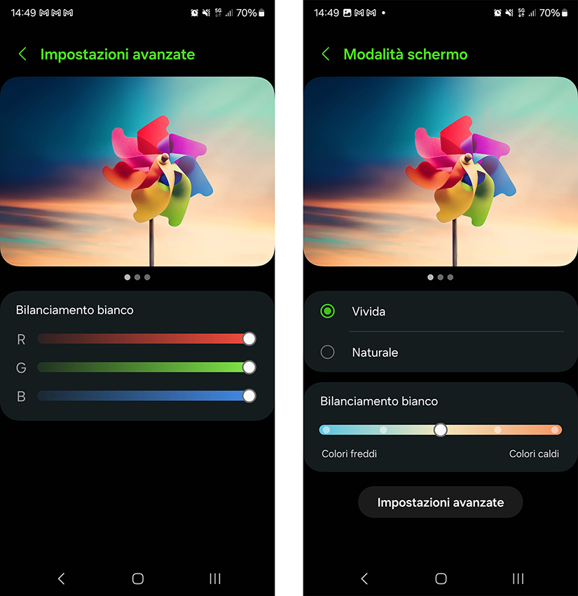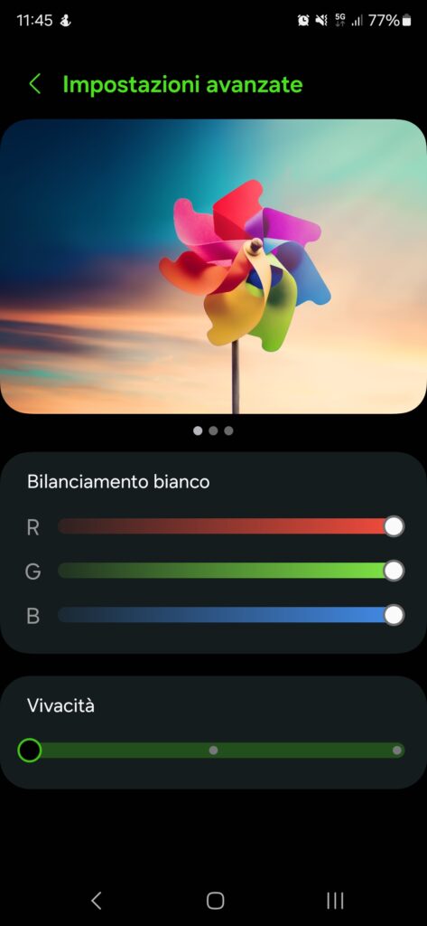 Gli utenti che desiderano visualizzare contenuti più incisivi sul loro Super Amoled potranno regolare il cursore a loro piacimento.