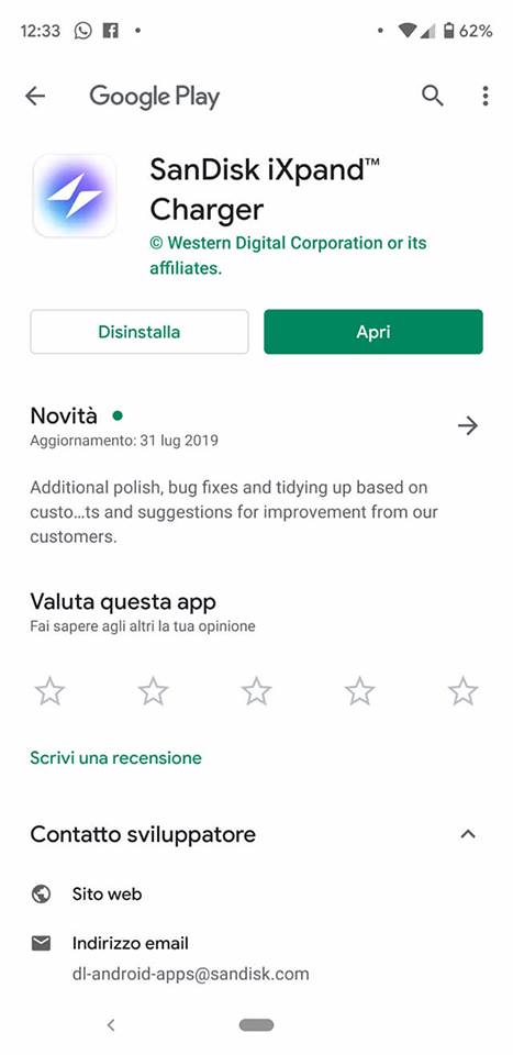 La prima cosa da fare è installare Sandisk Xpand Charger app sul nostro dispositivo scaricandola dallo store di Google Play.