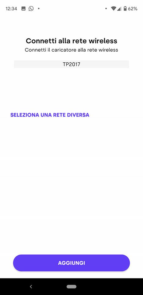 Appoggiate lo smartphone sulla basetta per rilevare la rete Wi-Fi a cui dovrà collegarsi. In caso di rete “Aperta” (senza password) il collegamento avviene automaticamente. Se invece avete una password cliccate su: “seleziona una rete diversa“, poi cliccate sulla rete suggerita, che poi è la stessa cui siete collegati in Wi-Fi con lo smartphone. In questo caso abbiamo selezionato la rete “TP2017” e inserito la password.