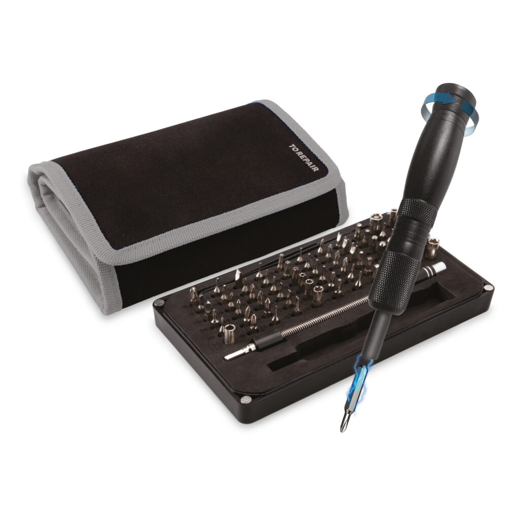 Il Pro Repair Kit 88 in 1 risponde a esigenze tecniche più complesse, offrendo una gamma completa di utensili di precisione per smontaggi delicati e ricomposizioni senza danni. Il più maneggevole Smart Repair Kit 25 in 1, invece, si rivolge a utenti avanzati e professionisti in mobilità.