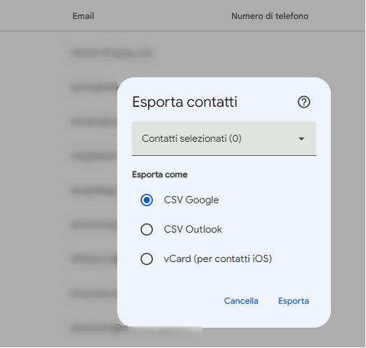 Passo 2. Esporta questi contatti in vari formati, come CSV o vCard, per importarli su un altro dispositivo o servizio.