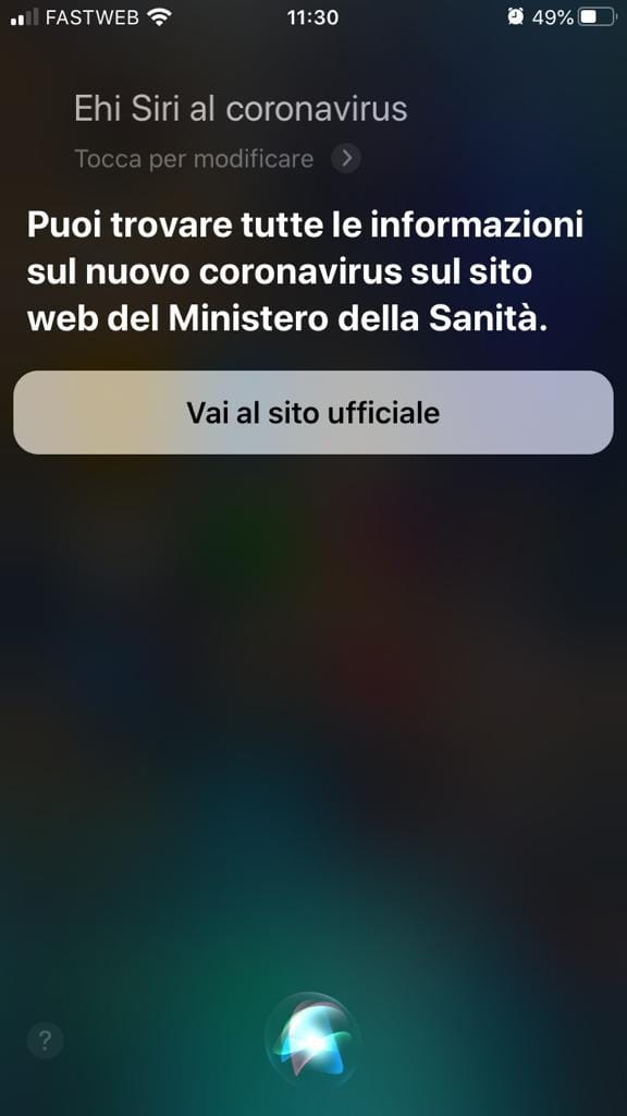 Dopo aver risposto alle domande (con risposta secca: sì o no) Siri suggerirà quali precauzioni prendere. In caso di basso rischio l’assistente digitale consiglierà di stare attenti a determinati sintomi, ricordando all’utente di lavare le mani regolarmente. Nel caso invece le i condizioni siano pericolose per la vita – in altre parole, se i sintomi includono dolore toracico, difficoltà respiratorie, vertigini, stordimento o linguaggio offuscato – l’assistente consiglierà di consultare immediatamente un medico.