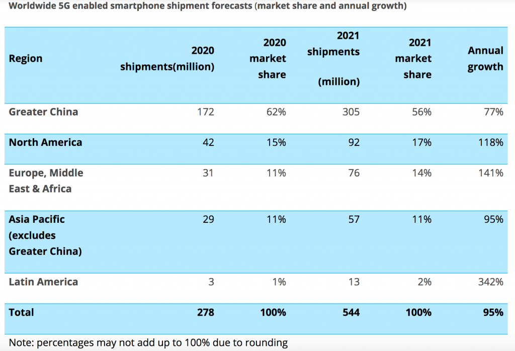 I produttori continueranno a spingere sull’acceleratore dei dispositivi 5G su questi mercati anche se la rete di nuova generazione non potrà dirsi completamente implementata ancora per parecchi mesi a venire.
