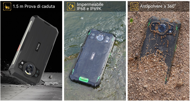 - certificazione IP69: presente nei modelli di più avanzati e professionali. Garantisce allo smartphone non solo di avere le resistenze appena citate, ma a queste si aggiunge anche la tolleranza a getti e schizzi d’acqua;