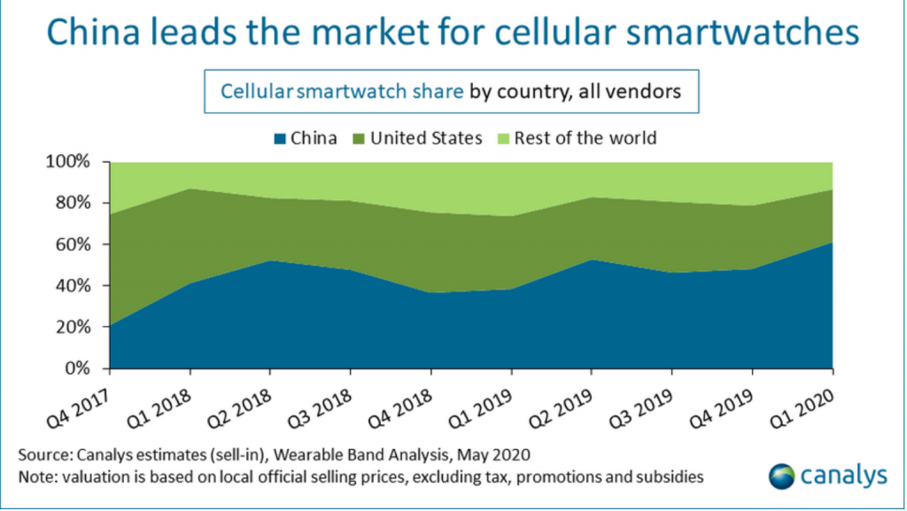 Le spedizioni di smartwatch in Cina sono cresciute del 66% nel primo trimestre 2020.