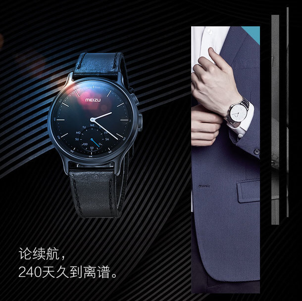 Due le colorazioni disponibili per Meizu Mix, bianco e grigio per tre differenti versioni che fanno capo a un’elegante ghiera comune in metallo: acciaio, pelle e tessuto. Il quadrante è piuttosto grande (42 mm) e protetto da vetro in zaffiro altamente resistente ai graffi offre un tradizionale sfondo analogico con all’interno il sensore per la vibrazione alla ricezione delle notifiche, un led sul display e vari sensori per il conteggio dei passi e dei km percorsi grazie all’accelerometro e il giroscopio. La connettività è assicurata dal Bluetooth 4.0 e tutti i dati vengono letti dall’apposita app per smartphone. Meizu si è concentrata sulla batteria e senza un display retroilluminato e una batteria da 270 mAh assicura fino 240 giorni di utilizzo. Impressionante.