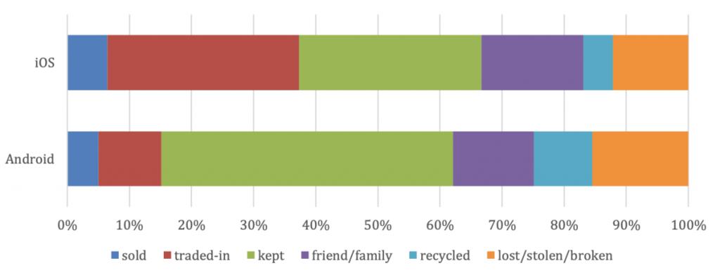 Di conseguenza, lo studio rileva che i telefoni tendono a essere cambiati meno rapidamente e spesso “dati a un membro della famiglia, venduti o tenuti per un uso futuro”.