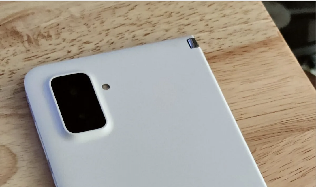 Nelle immagini fornite dall’annuncio, possiamo scoprire un dispositivo dalle forme simili a quelle del Surface Duo 2 con un design leggermente più rotondo, una finitura opaca e un modulo fotocamera meno prominente.
