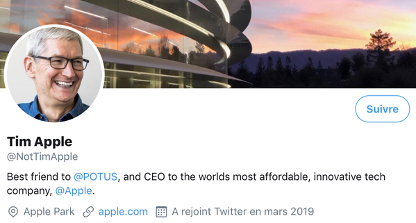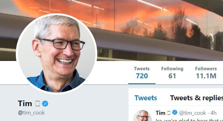 E infatti, poche ore dopo, ecco l’aggiornamento del profilo Twitter di Tim Cook. Il cognome del Ceo di Cupertino è cambiato. Spunta il simbolo della mela come a dire: adesso mi chiamo davvero Tim Apple.
