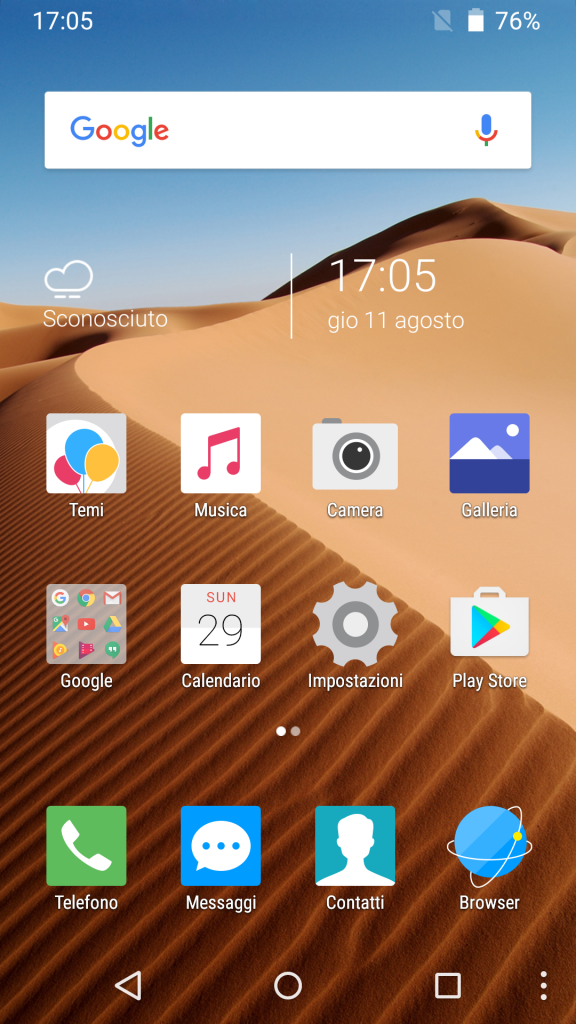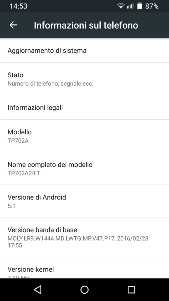 All’interno troviamo le caratteristiche simbolo dell’attuale fascia medio-bassa, processore MediaTek MT6753 da 1.3 GHz di clock, 2 GB di Ram, 16 GB di memoria interna espandibile tramite microSD e reparto fotografico composto da un obiettivo posteriore a 13 Megapixel e uno anteriore da 5 Megapixel.