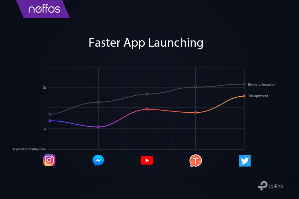 Il cambiamento più immediato e visibile nella nuova versione di NFUI 7.0 è l’ottimizzazione sistematica della velocità di avvio delle app (78% più rapido rispetto al precedente), simultaneamente all’accelerazione del CPU, attraverso algoritmi sviluppati da Neffos.