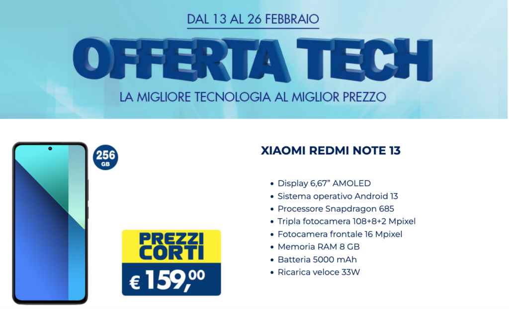 Il nuovo volantino Esselunga di questa settimana, nella sua Offerta Tech, è dedicato a uno smartphone che è stato molto apprezzato dal pubblico: lo Xiaomi Redmi Note 13.