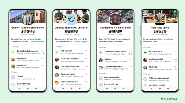 Gli amministratori della community potranno gestire i gruppi all’interno e inviare messaggi a tutti i gruppi contemporaneamente. Potranno ricevere gli aggiornamenti inviati all’intera community e organizzare gruppi di discussione più piccoli, specifici per argomento.