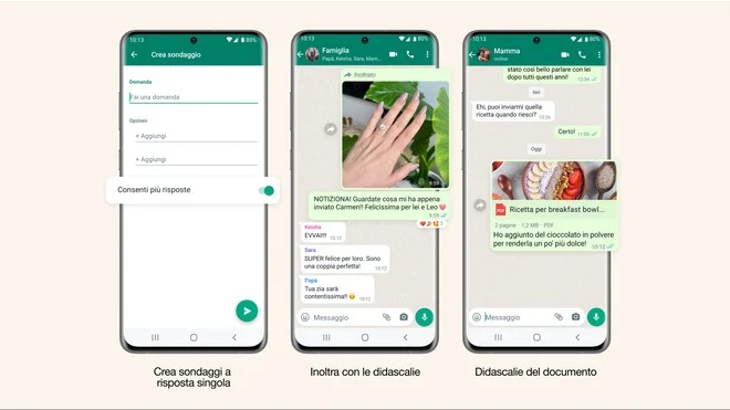 WhatsApp ha annunciato diverse nuove funzionalità sul suo blog ufficiale per rendere le sue conversazioni sempre più personalizzabili. L’ultima versione dell’app iOS (23.8.78) e Android (2.23.8.77) presenta varie opzioni per i sondaggi e le didascalie.