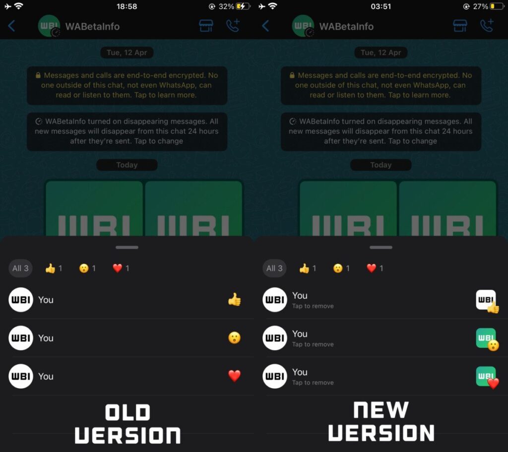 Aprile è stato il mese delle reazioni su WhatsApp, ovvero emoji che possono essere associate ai messaggi che riceviamo per esprimere una reazione ad un messaggio. L’applicazione ha implementato una nuova beta per iOS che migliora questo sistema, con una piccola modifica a livello di foto nelle conversazioni.