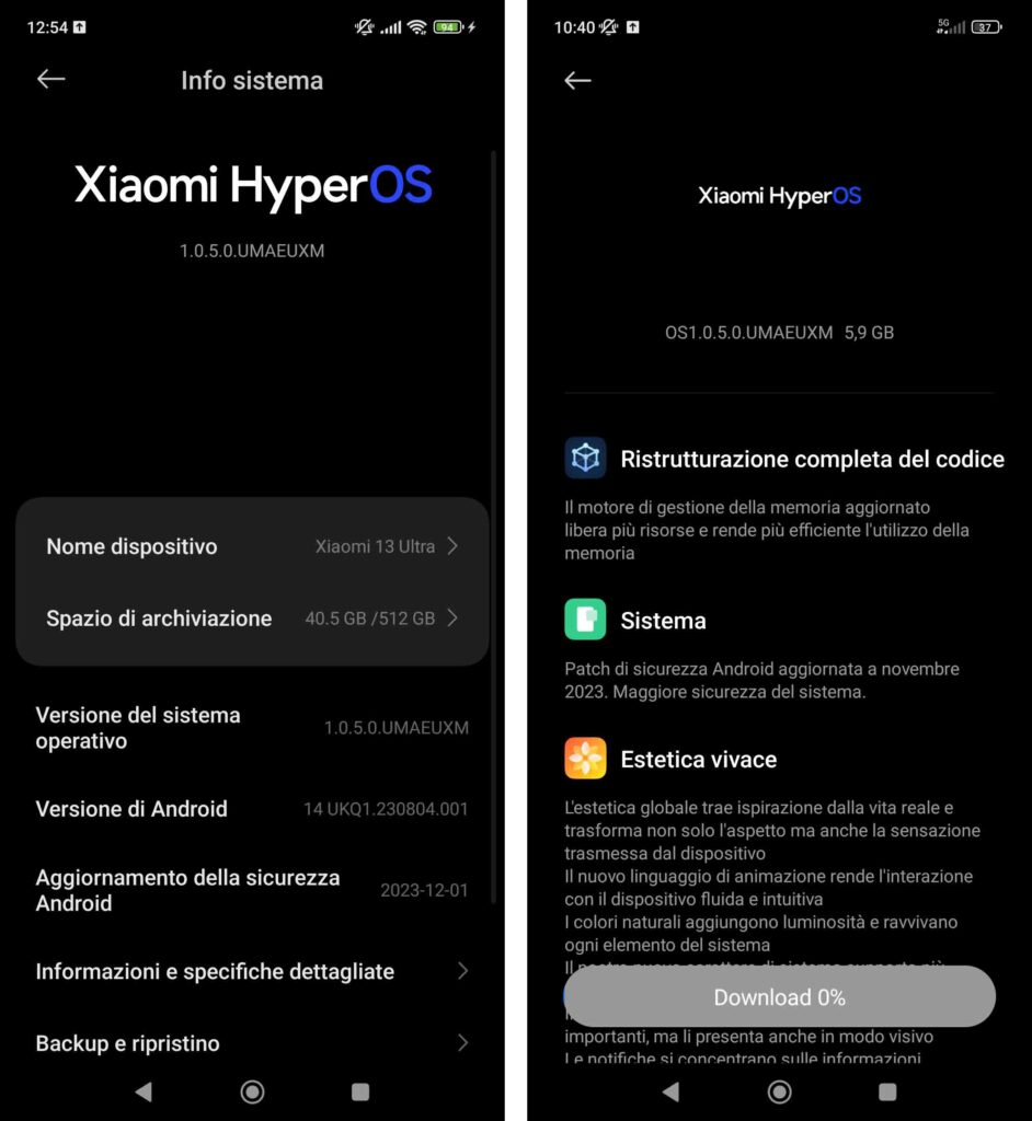 HyperOS arriverà gradatamente sui dispositivi Xiaomi insieme con Android 14. Il rollout globale è cominciato tanto che, quasi a sorpresa, uno smartphone della redazione, più precisamente il modello, Xiaomi 13 Ultra, ha ricevuto proprio questa mattina un aggiornamento di 5,9 GB con il nuovo HyperOS.
