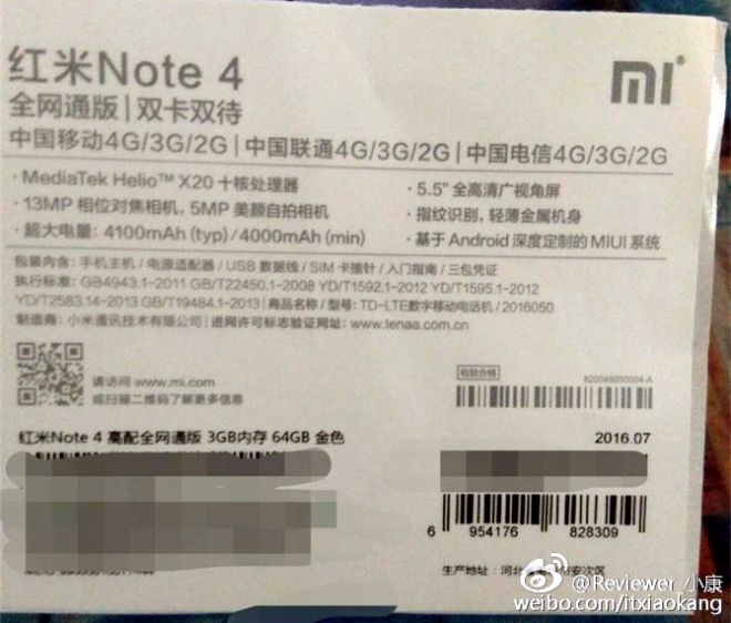 Il 27 luglio sarà il giorno di Xiaomi e, molto probabilmente, di Redmi Note 4, nuovo phablet entry level per questa seconda parte dell’anno. Direttamente dal social network Weibo veniamo a conoscenza di alcune indiscrezioni relative a design e specifiche tecniche. Redmi Note 4 dovrebbe essere realizzato interamente con una scocca in metallo e in diverse colorazioni tra cui spicca quella gold. Confermata poi la doppia fotocamera posteriore, il sensore d’impronte digitali oltre a un hardware di tutto rispetto che proviamo a sintetizzare così: